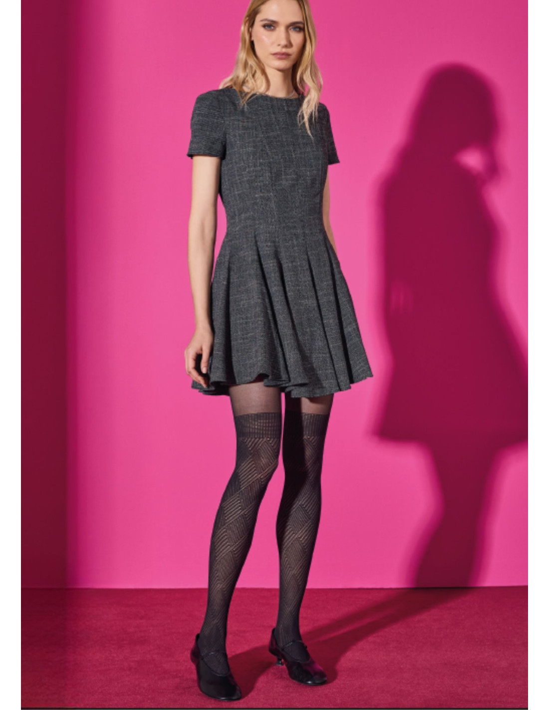 Nadkolienky a pančuchové nohavice v jednom, v dizajne IMPACT. Vďaka kombinácii nepriehľadnej a priehľadnej látky vzniká optická ilúzia nadkolienok. Navyše kvetinová potlač v prednej časti pančúch dodáva zmyselný a romantický nádych.