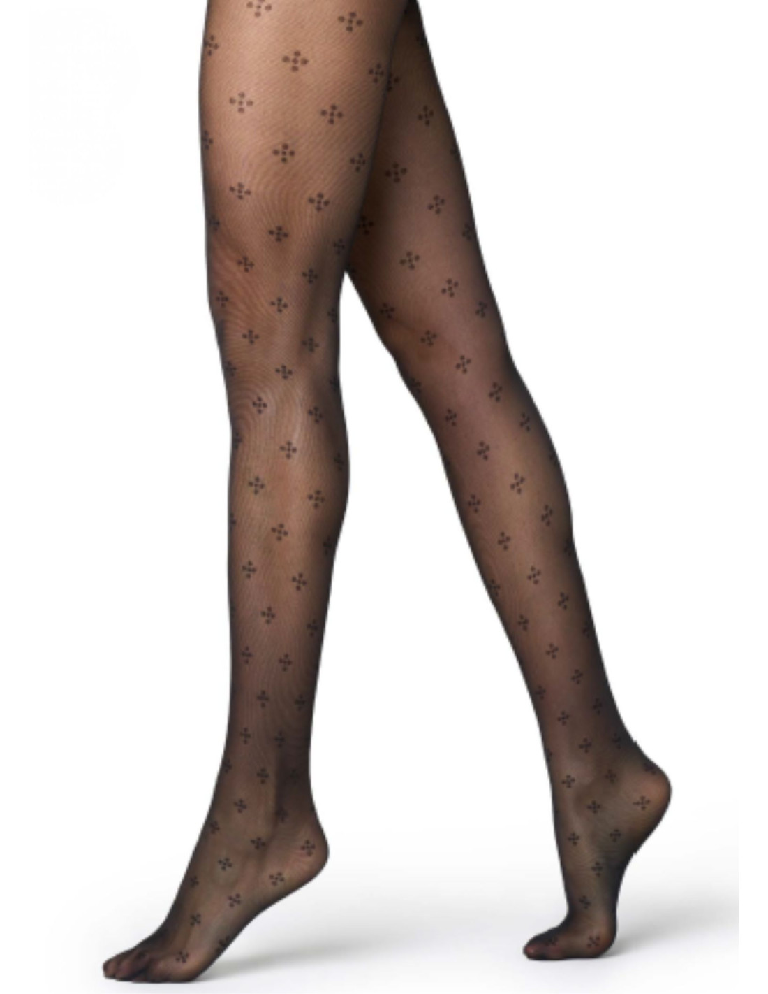 Polopriehľadné 40-denové pančuchové nohavice s nápaditým vzorom krížikov, ktoré sa nachádzajú na celej ploche. Ľahko sa kombinujú s ležérnym aj elegantným outfitom.