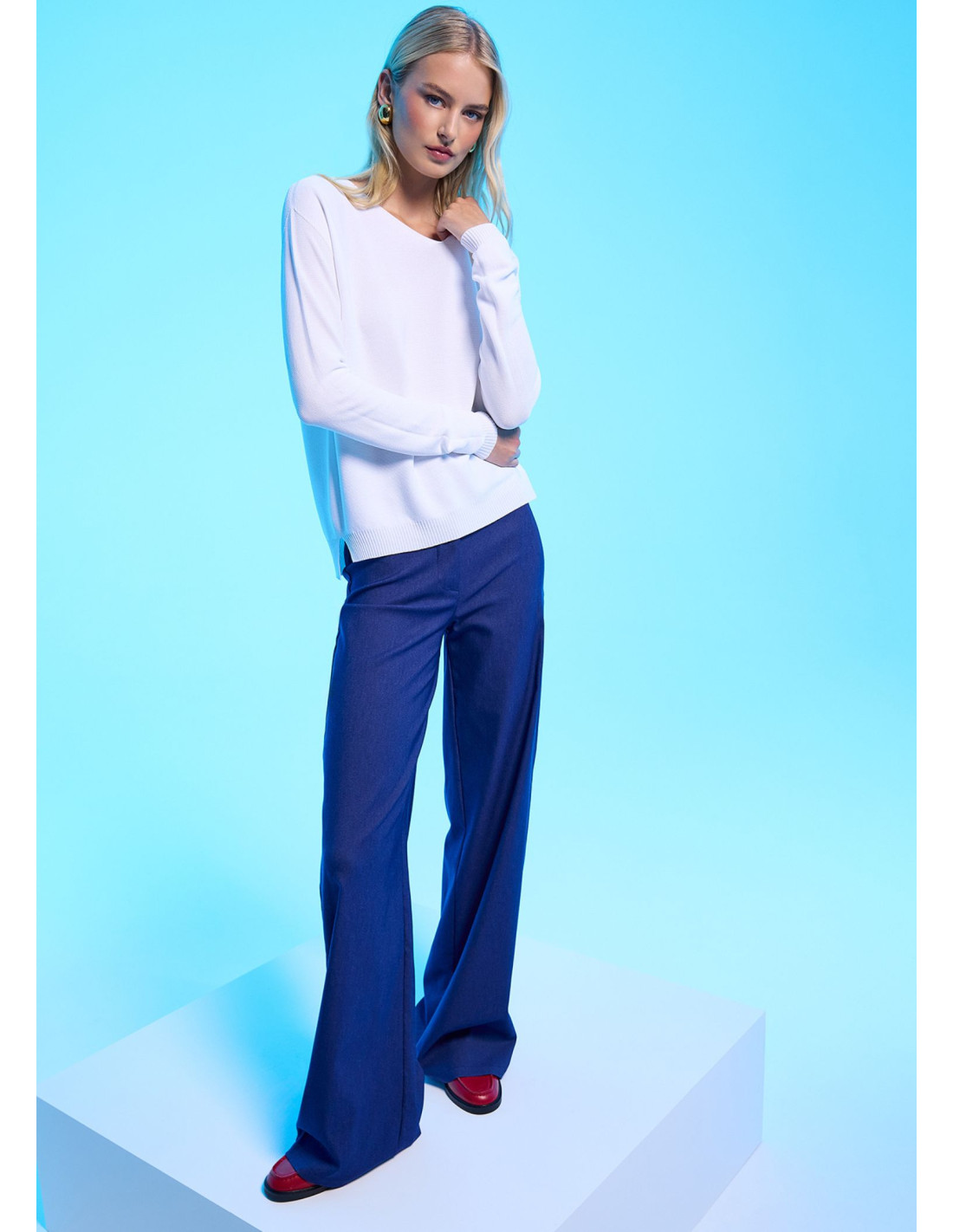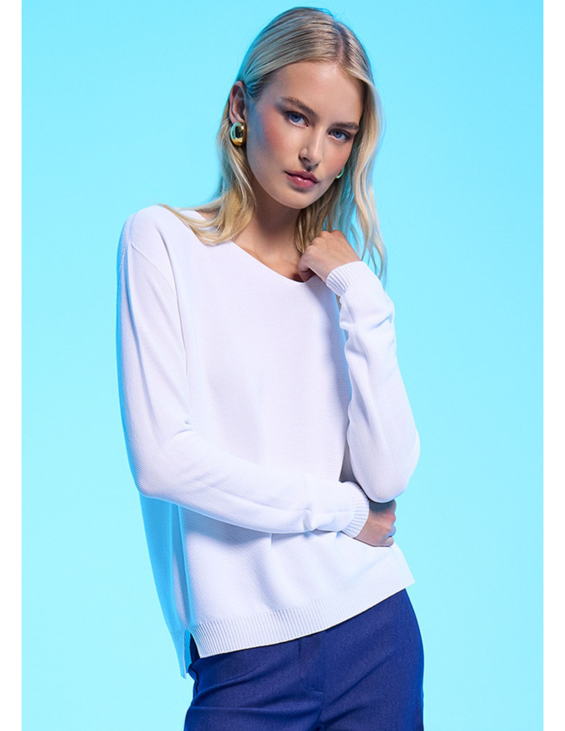 Hľadáte kúsok, ktorý vás podrží v kancelárii aj na nedeľnej káve? Tento štýlový top s dlhým rukávom kombinuje ležérny strih s nádychom luxusu. Vďaka kvalitnému materiálu je neuveriteľne príjemný na dotyk a krásne splýva na postave. Spája jemnú viskózu a odolný polyamid zaručuje, že sveter je priedušný, drží svoj tvar a nežmolkuje sa. Mierne uvoľnený strih s lodičkovým výstrihom lichotí každej postave a bočné rozparky mu dodávajú moderný šmrnc. Skvele sa hodí k elegantným nohaviciam, ale rovnako dobre vyzerá aj k vašim obľúbeným džínsom.
