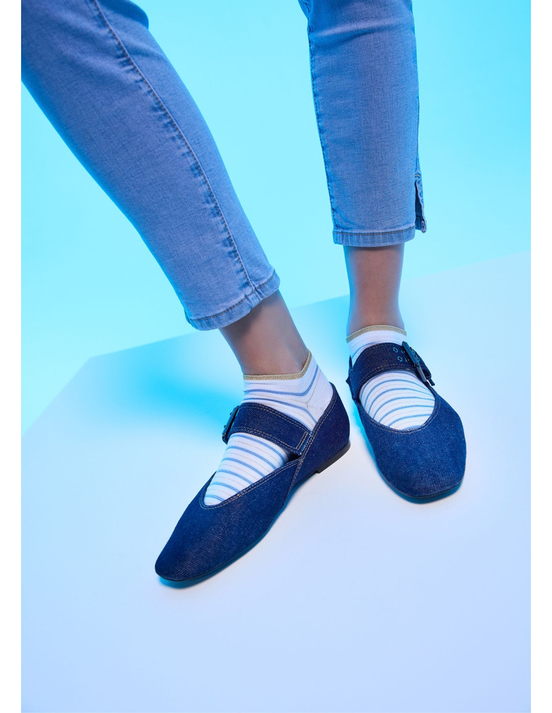 Hľadáte spôsob, ako oživiť jednoduchý outfit? Tieto štýlové pruhované ponožky sú perfektnou kombináciou športového pohodlia a hravého dizajnu. Vďaka jemnému vzoru a efektnému lemu sú ideálnym doplnkom pre každú malú aj veľkú milovníčku módy. Klasický pruhovaný vzor doplnený o metalický lurexový lem, ktorý sa jemne trbliece a dodáva ponožkám výnimočný vzhľad. Členková dĺžka je navrhnutá tak, aby perfektne sedela v nízkej obuvi, pričom elastický lem zabezpečuje, že ponožka zostane na svojom mieste bez tlačenia. Mäkký úplet s vysokým podielom bavlny zaručuje priedušnosť a komfort počas celého dňa.