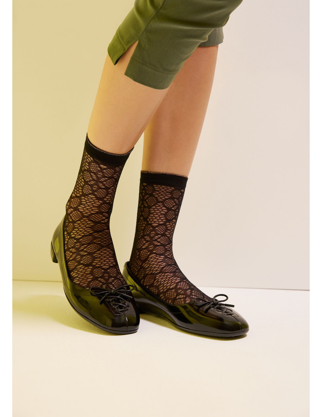 Zabudnite na nudu. Tieto čierne sieťované ponožky premenia aj ten najjednoduchší outfit na módne vyhlásenie. Vďaka detailnému kvetinovému/čipkovanému vzoru dodávajú nohám jemnosť a šarm, ktorý nikto neprehliadne. Jemná sieťka s prepracovaným vzorom pôsobí luxusne a žensky. Dokonale vyniknú v lakovaných balerínkach, lodičkách alebo členkových čižmách.