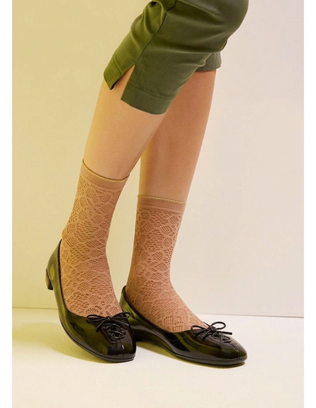 Zabudnite na nudu. Tieto čierne sieťované ponožky premenia aj ten najjednoduchší outfit na módne vyhlásenie. Vďaka detailnému kvetinovému/čipkovanému vzoru dodávajú nohám jemnosť a šarm, ktorý nikto neprehliadne. Jemná sieťka s prepracovaným vzorom pôsobí luxusne a žensky. Dokonale vyniknú v lakovaných balerínkach, lodičkách alebo členkových čižmách.